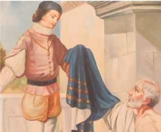 Antonio Maria era un giovane di famiglia ricca. In un momento della sua esistenza sente compassione di un uomo che viveva in strada, al freddo e gli offre il suo mantello, che era senz’altro di un panno di qualità considerato il suo censo.