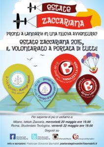 I giovani legati alle opere dei padri Barnabiti vogliono sottolineare un aspetto fondamentale della loro missionarietà e del loro stile di volontariato: il carisma zaccariano con il quale vogliono contraddistinguere la spiritualità con cui operare in ogni singola attività. Lo spirito zaccariano si rifà al padre fondatore della Congregazione, Sant’Antonio Maria Zaccaria, che già a suo tempo lottava contro la tiepidezza e indifferenza fornendo a tutti la capacità di riscoprire i propri talenti con la formazione e l’educazione di se stessi mettendoli a frutto per la comunità. E così ogni giorno noi giovani zaccariani siamo invitai a metterci in gioco lottando contro l’indifferenza, contro l’apatia, per andare oltre verso Dio e quindi verso gli altri, per dare la possibilità a tutti di ricercare la propria autenticità riuscendo a essere sempre noi stessi, lasciandoci travolgere dallo spirito di Dio che rinnova radicalmente la nostra essenza di donne, di uomini e di cristiani